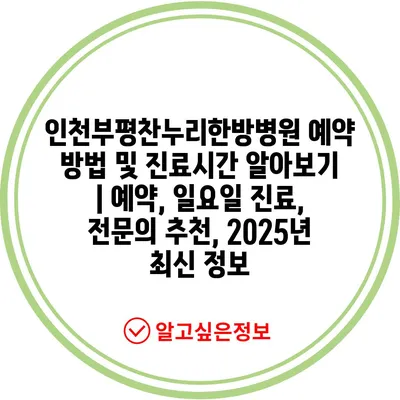 인천부평찬누리한방병원 예약 방법 및 진료시간 알아보기 | 예약, 일요일 진료, 전문의 추천, 2025년 최신 정보