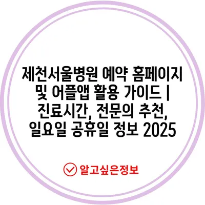 제천서울병원 예약 홈페이지 및 어플앱 활용 가이드 | 진료시간, 전문의 추천, 일요일 공휴일 정보 2025