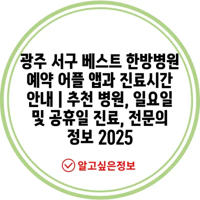광주 서구 베스트 한방병원 예약 어플 앱과 진료시간 공지 | 추천 병원, 일요일 및 공휴일 진료, 전연락 정보 2025에 대해 알아보겠습니다.
