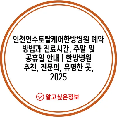 인천연수토탈케어한방병원 예약 방법과 진료시간, 주말 및 공휴일 안내 | 한방병원 추천, 전문의, 유명한 곳, 2025