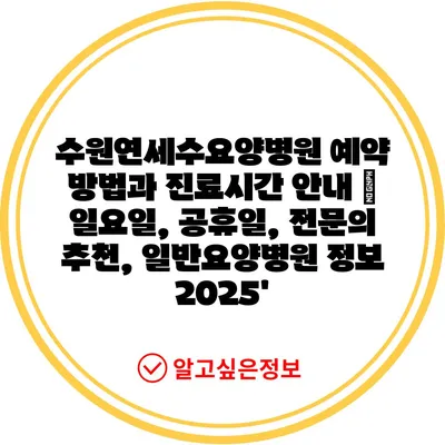 수원연세수요양병원 예약 방법과 진료시간 공지 | 일요일, 공휴일, 전연락 추천, 일반요양병원 정보 2025′ 에 대해 자주 묻는 질문 TOP 5