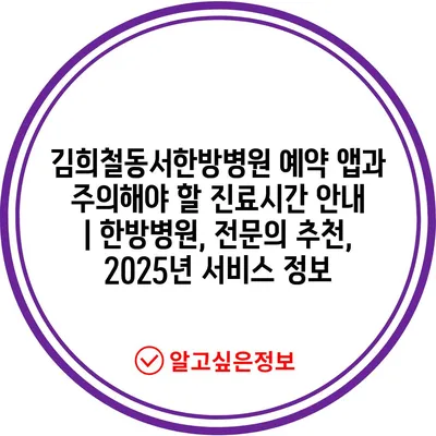 김희철동서한방병원 예약 앱과 주의해야 할 진료시간 공지 | 한방병원, 전연락 추천, 2025년 서비스 정보 에 대해 자주 묻는 질문 TOP 5