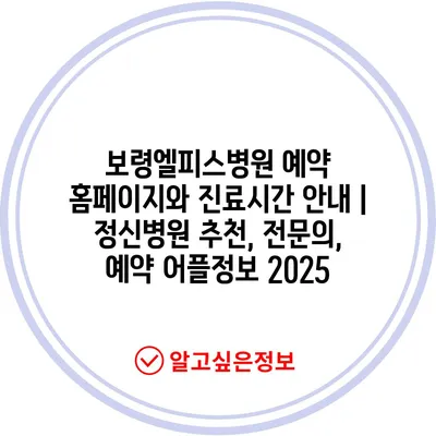 ✅ 보령엘피스병원 진료시간과 예약 방법을 지금 바로 알아보세요!