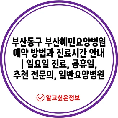 ✅ 부산혜민요양병원의 진료 시간과 예약 방법을 알아보세요.