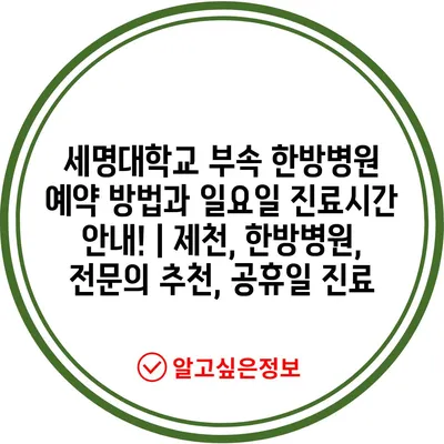 ✅ 세명대학교 한방병원의 예약 방법과 진료시간을 알아보세요!