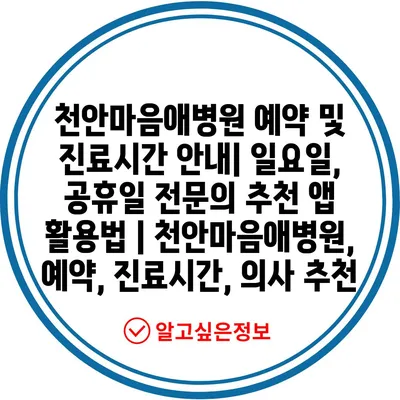 천안마음애병원 예약 및 진료시간 공지| 일요일, 공휴일 전연락 추천 앱 활용법 | 천안마음애병원, 예약, 진료시간, 의사 추천 에 대해 자주 묻는 질문 TOP 5