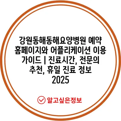 강원동해동해요양병원 예약 홈페이지와 어플리케이션 이용 설명서 | 진료시간, 전연락 추천, 휴일 진료 정보 2025에 대해 소개합니다.