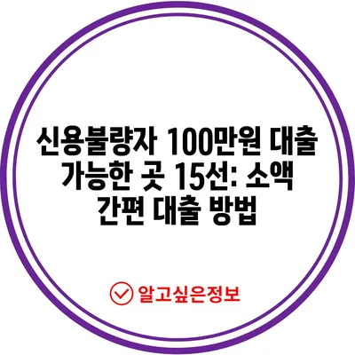 신용불량자 100만원 대출 가능한 곳 15선: 소액 간편 대출 방법