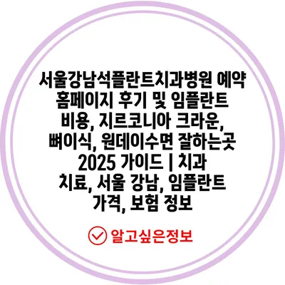 서울강남석플란트치과병원 예약 홈페이지 후기 및 임플란트 비용, 지르코니아 크라운, 뼈이식, 원데이수면 잘하는곳 2025 설명서 | 치과 치료, 서울 강남, 임플란트 가격, 보험 정보 에 대해 자주 묻는 질문 TOP 5