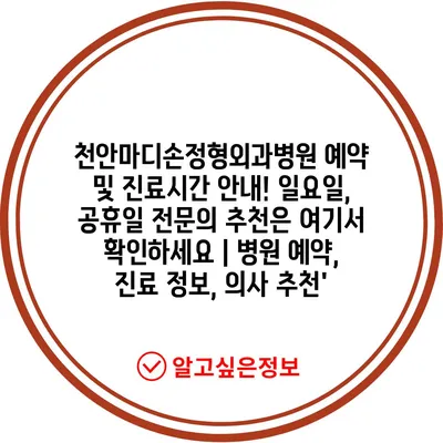✅ 천안마디손정형외과병원 예약 방법을 쉽게 알아보세요!