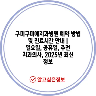 구미구미예치과병원 예약 방법 및 진료시간 공지 | 일요일, 공휴일, 추천 치과의사, 2025년 최신 내용을 소개합니다.