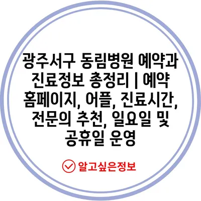 광주서구 동림병원 예약과 진료정보 총정리 | 예약 홈페이지, 어플, 진료시간, 전문의 추천, 일요일 및 공휴일 운영