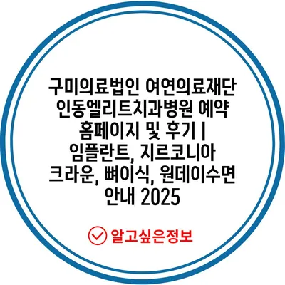구미의료법인 여연의료재단 인동엘리트치과병원 예약 홈페이지 및 후기 | 임플란트, 지르코니아 크라운, 뼈이식, 원데이수면 공지 2025 에 대해 자주 묻는 질문 TOP 5