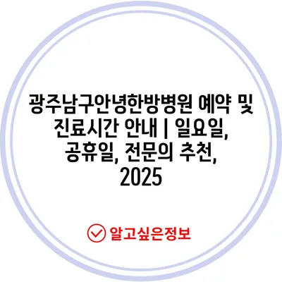 광주남구안녕한방병원 예약 및 진료시간 공지 | 일요일, 공휴일, 전연락 추천, 2025에 대해 자세히 알아보겠습니다.