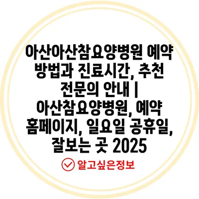 아산아산참요양병원 예약 방법과 진료시간, 추천 전연락 공지 | 아산참요양병원, 예약 홈페이지, 일요일 공휴일, 잘보는 곳 2025 에 대해 자주 묻는 질문 TOP 5