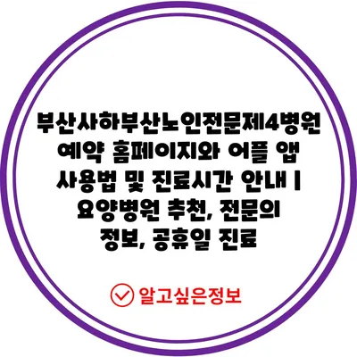 ✅ 부산사하부산노인전문제4병원 예약 시스템을 자세히 알아보세요.
