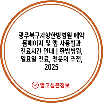 광주북구자향한방병원 예약 홈페이지 및 앱 사용법과 진료시간 공지 | 한방병원, 일요일 진료, 전연락 추천, 2025 에 대해 자주 묻는 질문 TOP 5