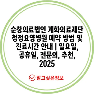 순창의료법인 계화의료재단 청정요양병원 예약 방법 및 진료시간 안내 | 일요일, 공휴일, 전문의, 추천, 2025