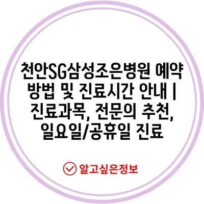 ✅ 천안SG삼성조은병원의 예약 방법과 진료 시간을 알아보세요!
