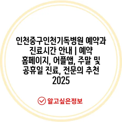 인천중구인천기독병원 예약과 진료시간 공지 | 예약 홈페이지, 어플앱, 주말 및 공휴일 진료, 전연락 추천 2025