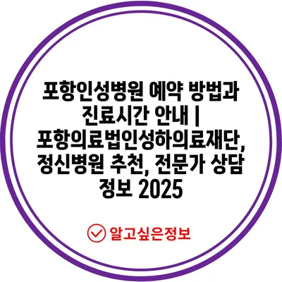 포항인성병원 예약 방법과 진료시간 안내 | 포항의료법인성하의료재단, 정신병원 추천, 전문가 상담 정보 2025