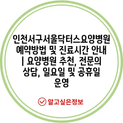 인천서구서울닥터스요양병원의 진료시간과 예약 방법을 지금 바로 알아보세요!