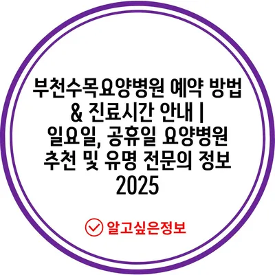 부천수목요양병원 예약 방법 & 진료시간 공지 | 일요일, 공휴일 요양병원 추천 및 유명 전연락 정보 2025에 대해 자주 묻는 질문 TOP 5