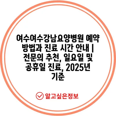 여수여수강남요양병원 예약 방법과 진료 시간 공지 | 전연락 추천, 일요일 및 공휴일 진료, 2025년 기준 에 대해 자주 묻는 질문 TOP 5
