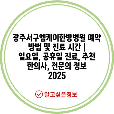 ✅ 광주서구엠케이한방병원의 예약 방법과 진료 시간 자세히 알아보세요.