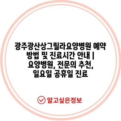 ✅ 광주광산상그릴라요양병원의 진료시간과 예약 방법을 지금 바로 알아보세요!