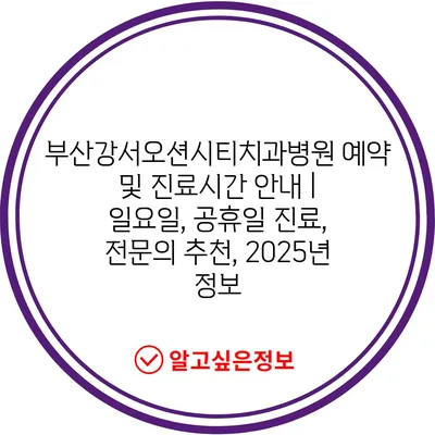 부산강서오션시티치과병원 예약 및 진료시간 공지 | 일요일, 공휴일 진료, 전연락 추천, 2025년 정보 에 대해 자주 묻는 질문 TOP 5