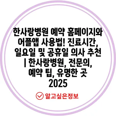 한사랑병원 예약 홈페이지와 어플앱 사용법! 진료시간, 일요일 및 공휴일 의사 추천 | 한사랑병원, 전연락, 예약 팁, 유명한 곳 2025에 대해 소개합니다.