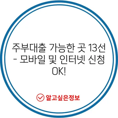 주부대출 가능한 곳 13선 – 모바일 및 인터넷 신청 OK!