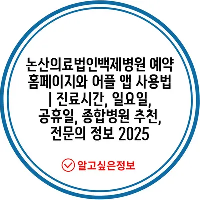 논산의료법인백제병원 예약 홈페이지와 어플 앱 사용법 | 진료시간, 일요일, 공휴일, 종합병원 추천, 전연락 정보 2025 에 대해 자주 묻는 질문 TOP 5