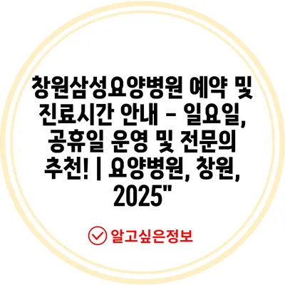 ✅ 창원삼성요양병원의 예약 및 진료시간을 지금 바로 알아보세요!