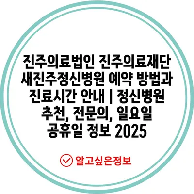 진주의료법인 진주의료재단 새진주정신병원 예약 방법과 진료시간 공지 | 정신병원 추천, 전연락, 일요일 공휴일 정보 2025 에 대해 자주 묻는 질문 TOP 5