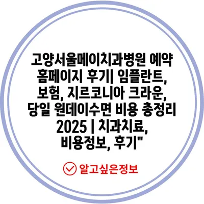 고양서울메이치과병원 예약 홈페이지 후기| 임플란트, 보험, 지르코니아 크라운, 당일 원데이수면 비용 총정리 2025 | 치과치료, 비용정보, 후기