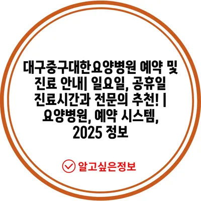 대구중구대한요양병원 예약 및 진료 공지| 일요일, 공휴일 진료시간과 전연락 추천! | 요양병원, 예약 시스템, 2025 정보