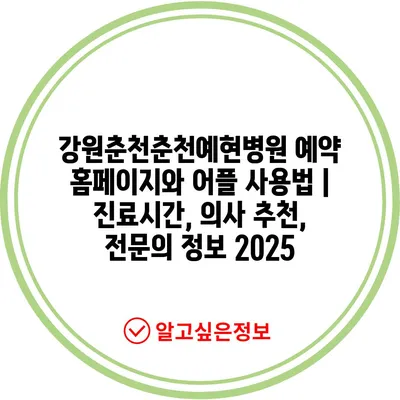 강원춘천춘천예현병원 예약 홈페이지와 어플 사용법 | 진료시간, 의사 추천, 전연락 정보 2025에 대해 소개합니다.