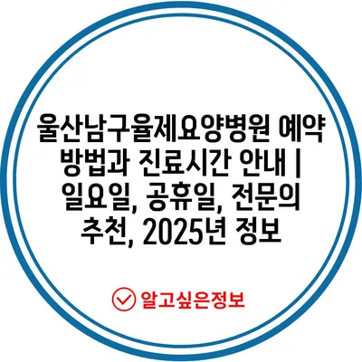 울산남구율제요양병원 예약 방법과 진료시간 공지 | 일요일, 공휴일, 전연락 추천, 2025년 정보 에 대해 자주 묻는 질문 TOP 5