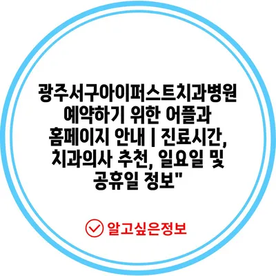 ✅ 광주서구아이퍼스트치과병원의 예약 방법을 지금 바로 알아보세요!