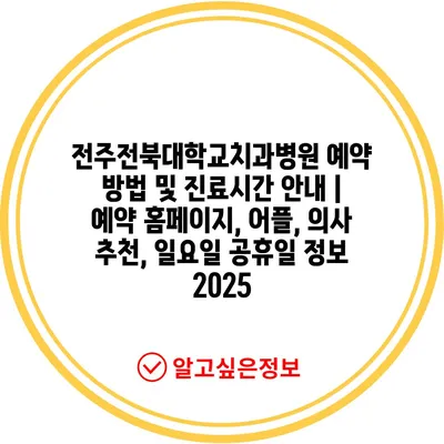✅ 전주전북대학교치과병원의 예약 방법을 지금 바로 알아보세요!