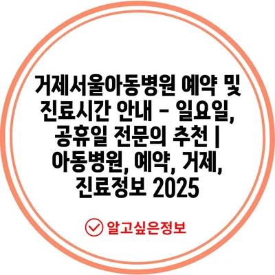 거제서울아동병원 예약 및 진료시간 공지 – 일요일, 공휴일 전연락 추천 | 아동병원, 예약, 거제, 진료정보 2025 에 대해 자주 묻는 질문 TOP 5