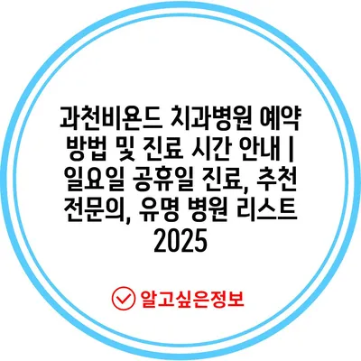 과천비욘드 치과병원 예약 방법 및 진료 시간 공지 | 일요일 공휴일 진료, 추천 전연락, 유명 병원 리스트 2025에 대해 자주 묻는 질문 TOP 5
