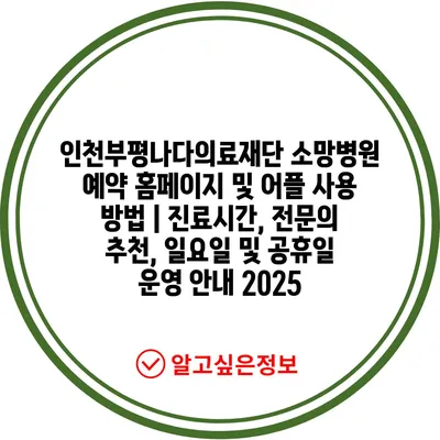 인천부평나다의료재단 소망병원 예약 홈페이지 및 어플 사용 방법 | 진료시간, 전연락 추천, 일요일 및 공휴일 운영 공지 2025 에 대해 자주 묻는 질문 TOP 5