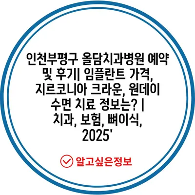 인천부평구 올담치과병원 예약 및 후기| 임플란트 가격, 지르코니아 크라운, 원데이 수면 치료 정보는?