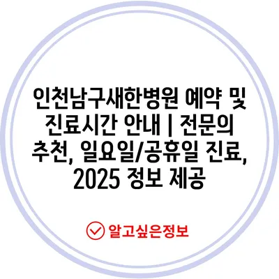 인천남구새한병원 예약 및 진료시간 안내 | 전문의 추천, 일요일/공휴일 진료, 2025 정보 제공