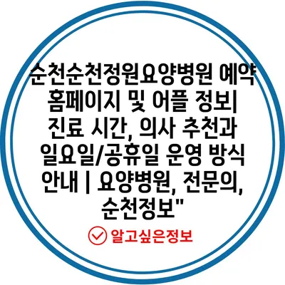 ✅ 순천순천정원요양병원의 진료시간과 예약 방법을 알아보세요.