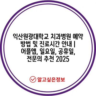 ✅ 익산원광대학교 치과병원의 예약 방법을 지금 바로 알아보세요!
