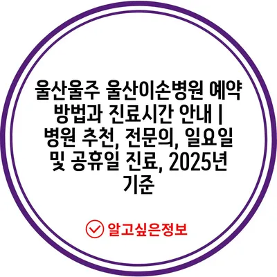 울산울주 울산이손병원 예약 방법과 진료시간 공지 | 병원 추천, 전연락, 일요일 및 공휴일 진료, 2025년 기준 에 대해 자주 묻는 질문 TOP 5